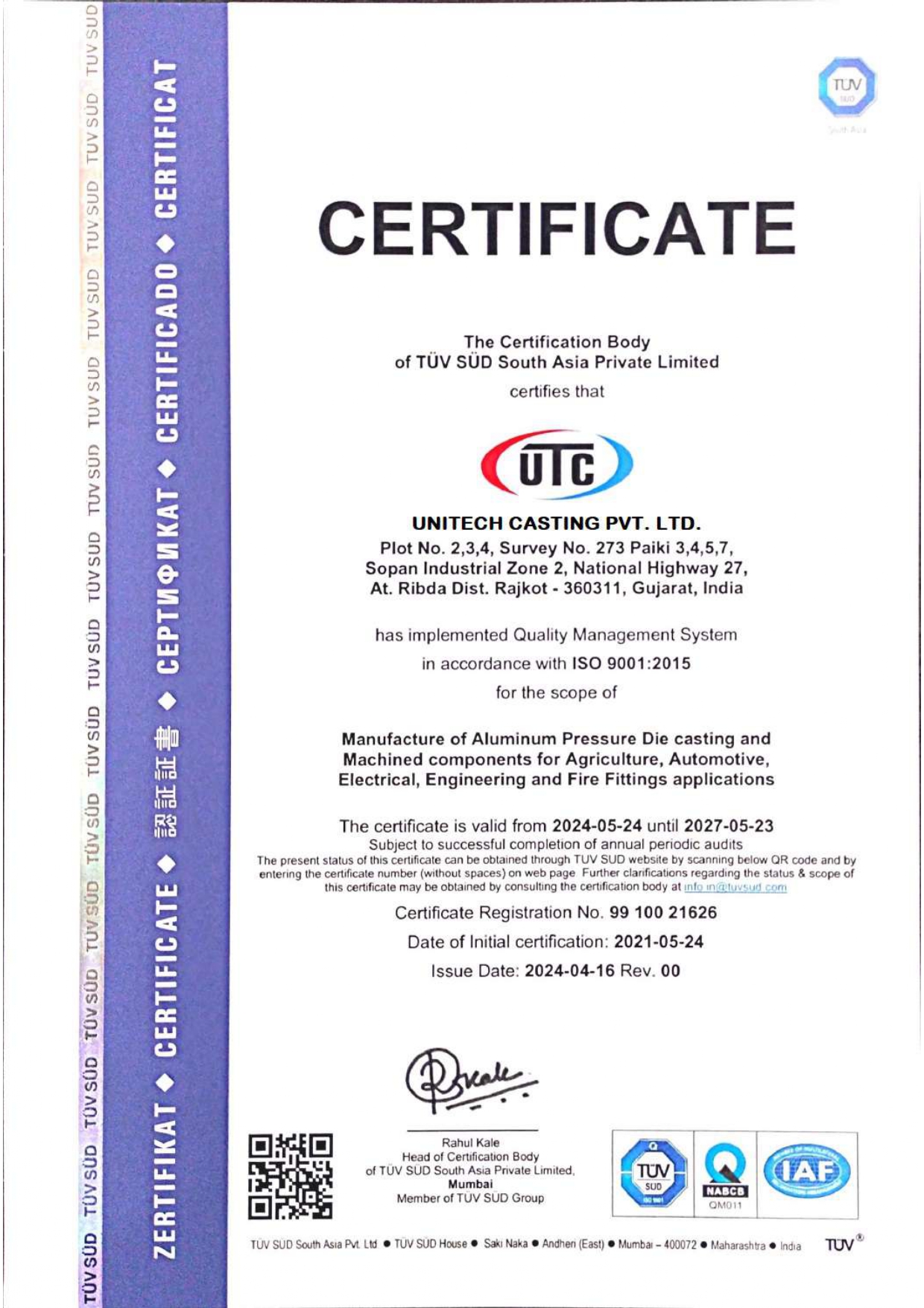 Our management is committed to constantly improve the quality management system and customer satisfaction through periodic training of employees, collection of customer feedback, adapting new technology and auditing company performance. We set and attain new quality objectives each year. This can only be achieved through the persistent support of our employees.